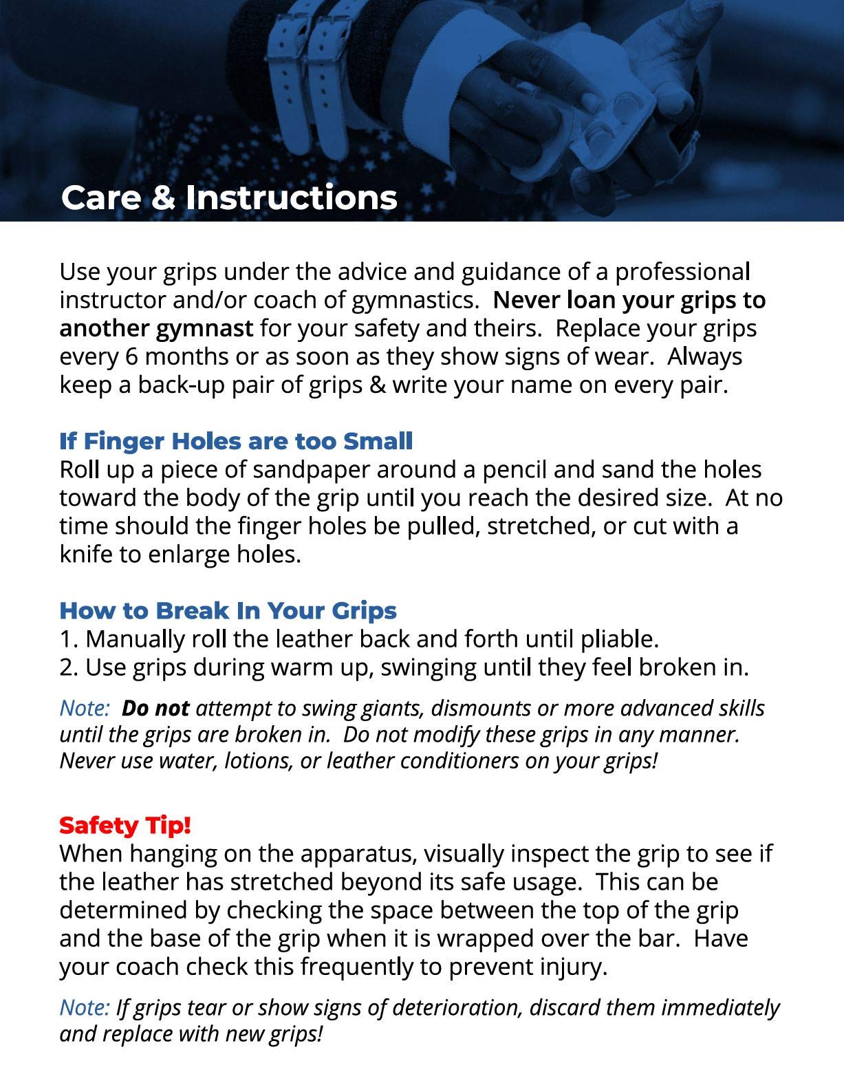 - VARIETY OF SIZES: This design is ideal for gymnasts with a wide or square palm. Can cater to small and large hand size. To find your correct size, measure hands in inches, from the wrist to the tip of the middle finger. The use of wristbands is recommended with these hand grips. Set are available 6 sizes--00, 0, 1, 2, 3, and 4.